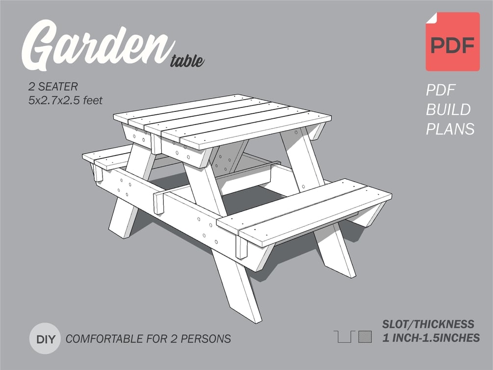 DIY 2 Seater Garden Table Plans, Backyard Table Bench, Patio Table, Easy PDF Build Plans, Digital Instant Download..